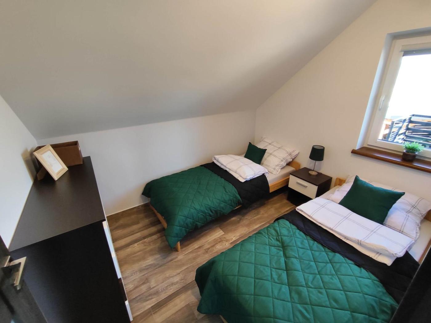 Apartament z 2 sypialniami. Featuring a private entrance, this apartment consists of 1 living room, 2 separate bedrooms and 1 bathroom with a shower and a hairdryer. Guests will find a stovetop, a refrigerator, a dishwasher and kitchenware in the kitchen. The apartment also offers a barbecue. Boasting a terrace with garden views, this apartment also provides a tea and coffee maker and a flat-screen TV. The unit offers 5 beds. Apartament - 6 osobowy. Powierzchnia pokoju ok.: 40 mkw.