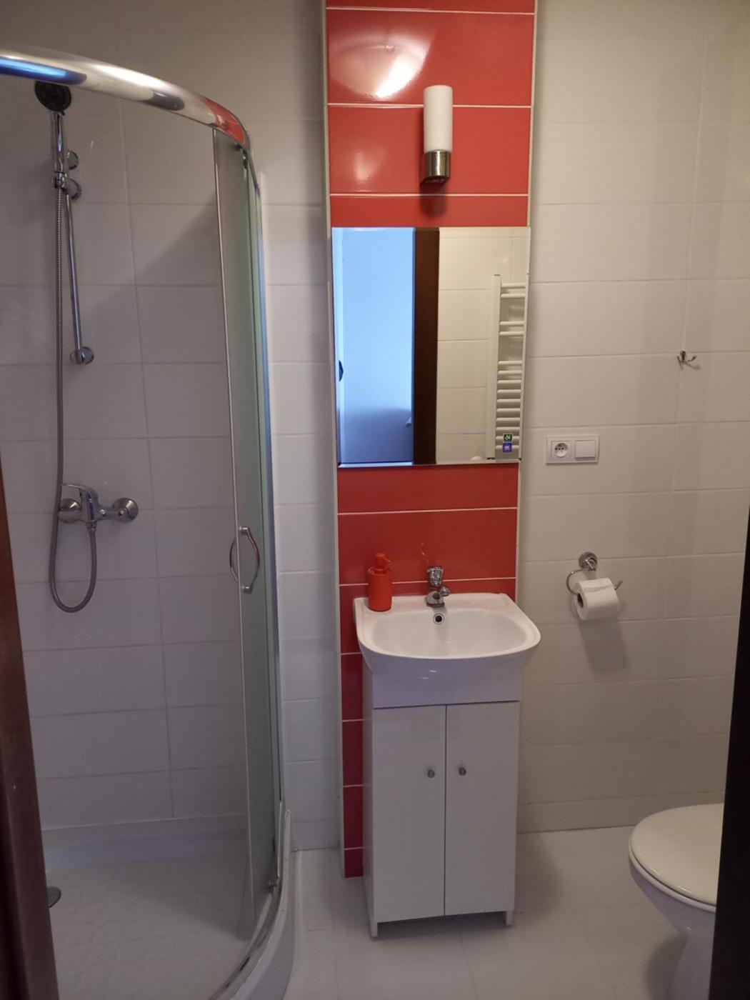 Pokój czteroosobowy typu Standard. The quadruple room features a tea and coffee maker and a wardrobe, as well as a private bathroom boasting a shower. This quadruple room has a carpeted floor, heating and a flat-screen TV. The unit has 3 beds. Pokój Czteroosobowy - 4 osobowy. Powierzchnia pokoju ok.: 25 mkw.