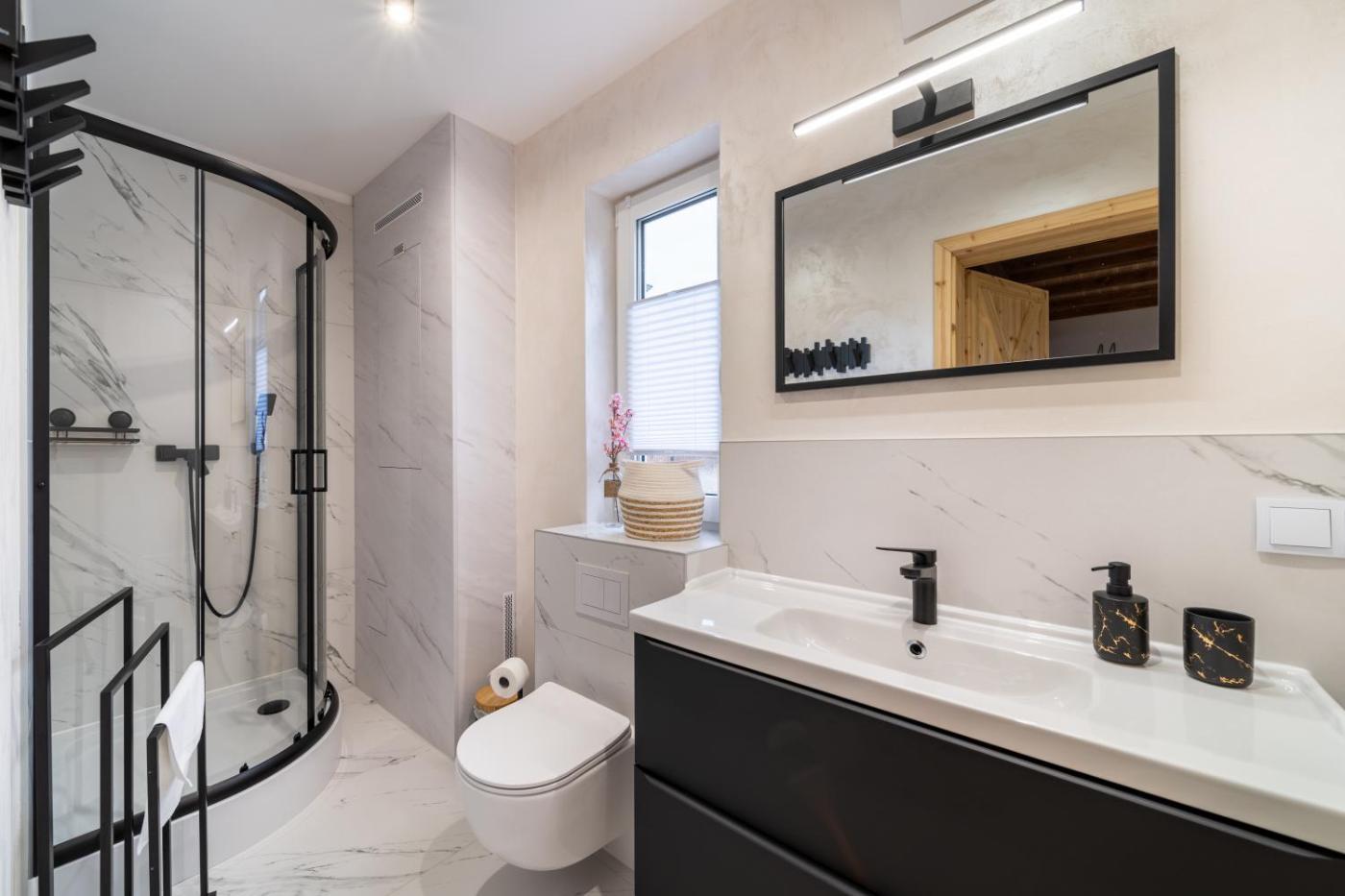 Domek z 3 sypialniami. Boasting a private entrance, this spacious chalet also includes 1 living room, 3 separate bedrooms and 2 bathrooms with a shower. The well-fitted kitchen has a stovetop, a refrigerator, a dishwasher and kitchenware. Featuring a terrace with garden views, this chalet also offers a tea and coffee maker and a flat-screen TV. The unit has 5 beds. Domek - 8 osobowy. Powierzchnia pokoju ok.: 75 mkw.