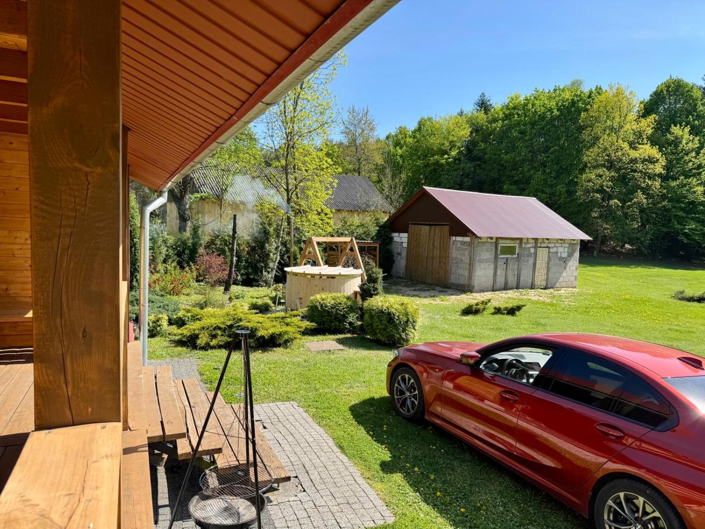 Dom z 2 sypialniami. The hot tub is a top feature of this holiday home. This holiday home comes with 1 living room, 2 separate bedrooms and 1 bathroom with a hairdryer. Guests will find a stovetop, a refrigerator, kitchenware and a microwave in the fully equipped kitchenette. The holiday home also includes a barbecue. The holiday home has a terrace with outdoor furniture and garden viewsyou can relax. The unit has 4 beds. Dom wakacyjny - 4 osobowy. Powierzchnia pokoju ok.: 16 mkw.