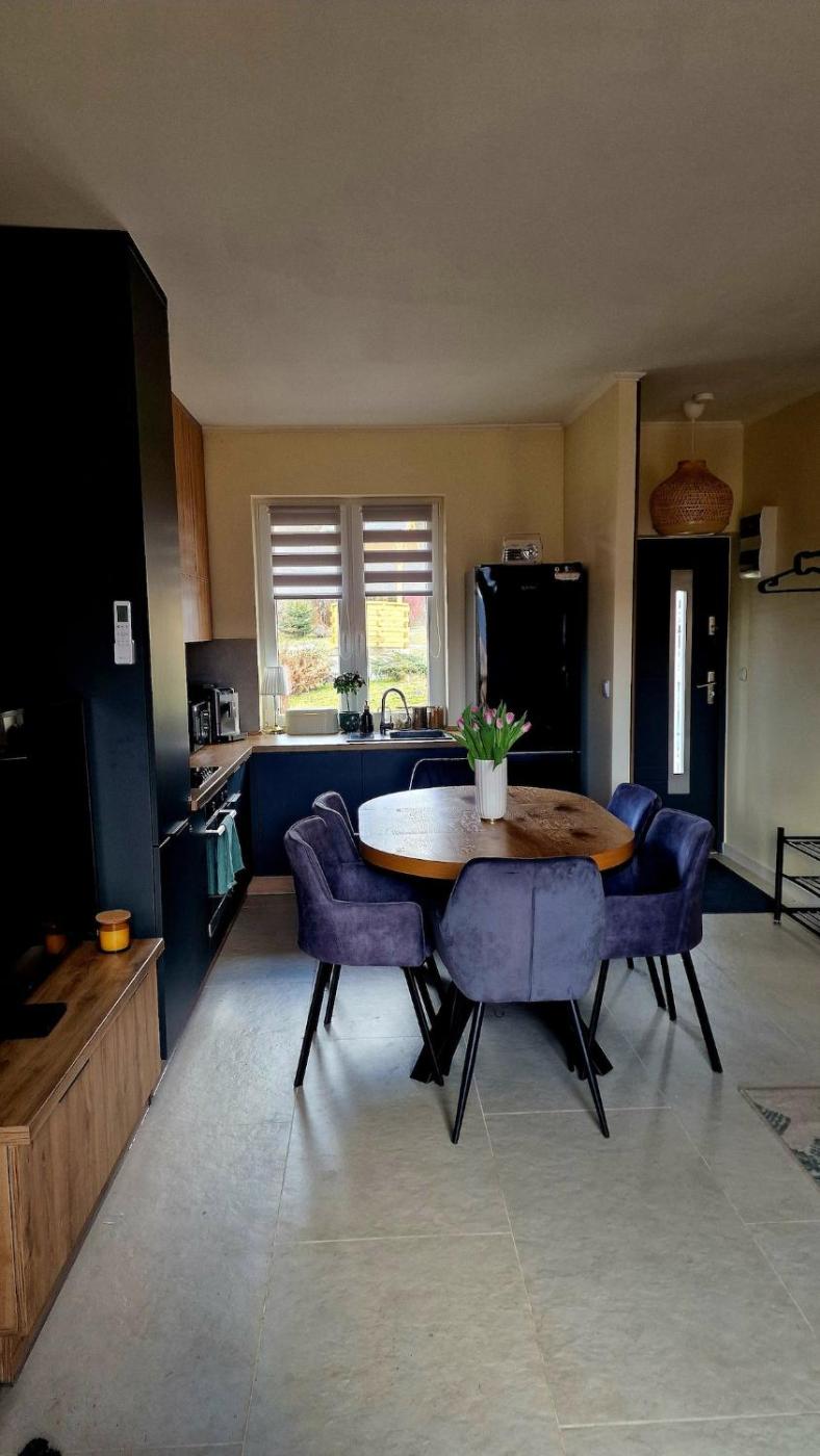 Domek. Guests will have a special experience as the chalet features a fireplace. Featuring a private entrance, this air-conditioned chalet consists of 2 living rooms, 4 separate bedrooms and 2 bathrooms with a shower and a hairdryer. Guests will find a stovetop, a refrigerator, a dishwasher and kitchenware in the fully equipped kitchenette. The chalet also offers a barbecue. The spacious chalet provides a flat-screen TV with satellite channels, a washing machine, a tea and coffee maker, a seating area as well as garden views. The unit offers 8 beds. Domek - 12 osobowy. Powierzchnia pokoju ok.: 100 mkw.