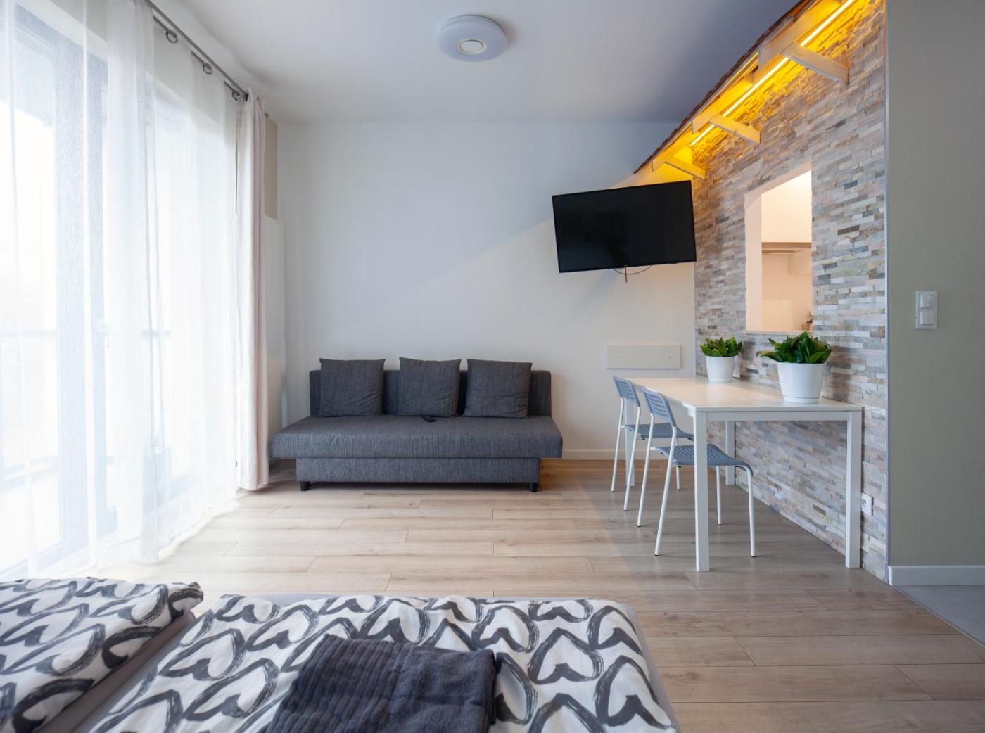 W apartamencie zapewniono sypialnię (1), łazienkę (1), pościel, ręczniki, jadalnię oraz kuchnię z pełnym wyposażeniem. Do dyspozycji Gości jest także telewizor z płaskim ekranem z dostępem do kanałów satelitarnych oraz balkon z widokiem na miasto.